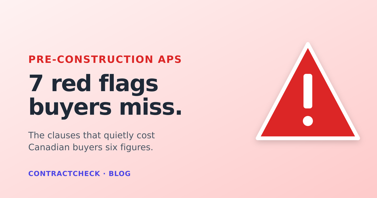 Most of the damage from a pre-construction purchase comes from a handful of clauses written to shift risk to the buyer. Spotting them before you sign — or during the cooling-off period — is the single highest-leverage thing you can do.